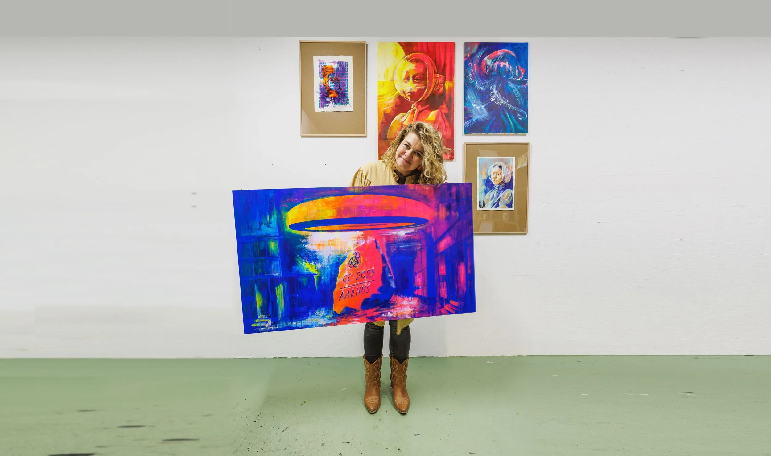 Kunst skaber stemning og identitet. Jeg tilbyder skræddersyede udsmykningsløsninger til virksomheder, kontorer og institutioner, hvor farver og motiver understøtter rummets atmosfære og budskab.